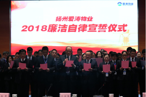 - 為切實(shí)加強(qiáng)公司管理人員的廉潔自律,認(rèn)真落實(shí)廉潔奉公的工作作風(fēng),2018年3月18日,愛濤物業(yè)組織全體中層人員及領(lǐng)導(dǎo)班子成員在紫京飯店報(bào)告廳舉行了廉潔自律宣誓儀式,并現(xiàn)場簽訂了《廉潔自律承諾書》。 整個(gè)活動(dòng)莊重嚴(yán)肅,給公司全體管理人員上了一次深刻的廉政黨課,為大家敲醒了廉政的警鐘。黨支部強(qiáng)調(diào)要認(rèn)真發(fā)揮承諾書在干部管理中的作用,要正視問題,充分認(rèn)識廉潔自律的重要意義,通過廉潔自律公約的學(xué)習(xí),強(qiáng)化管理人員的創(chuàng)新意識、奉獻(xiàn)意識、底線意識、主人翁意識,遵守法紀(jì)法規(guī),遵守廉潔自律承諾,提高綜合素質(zhì),提升工作